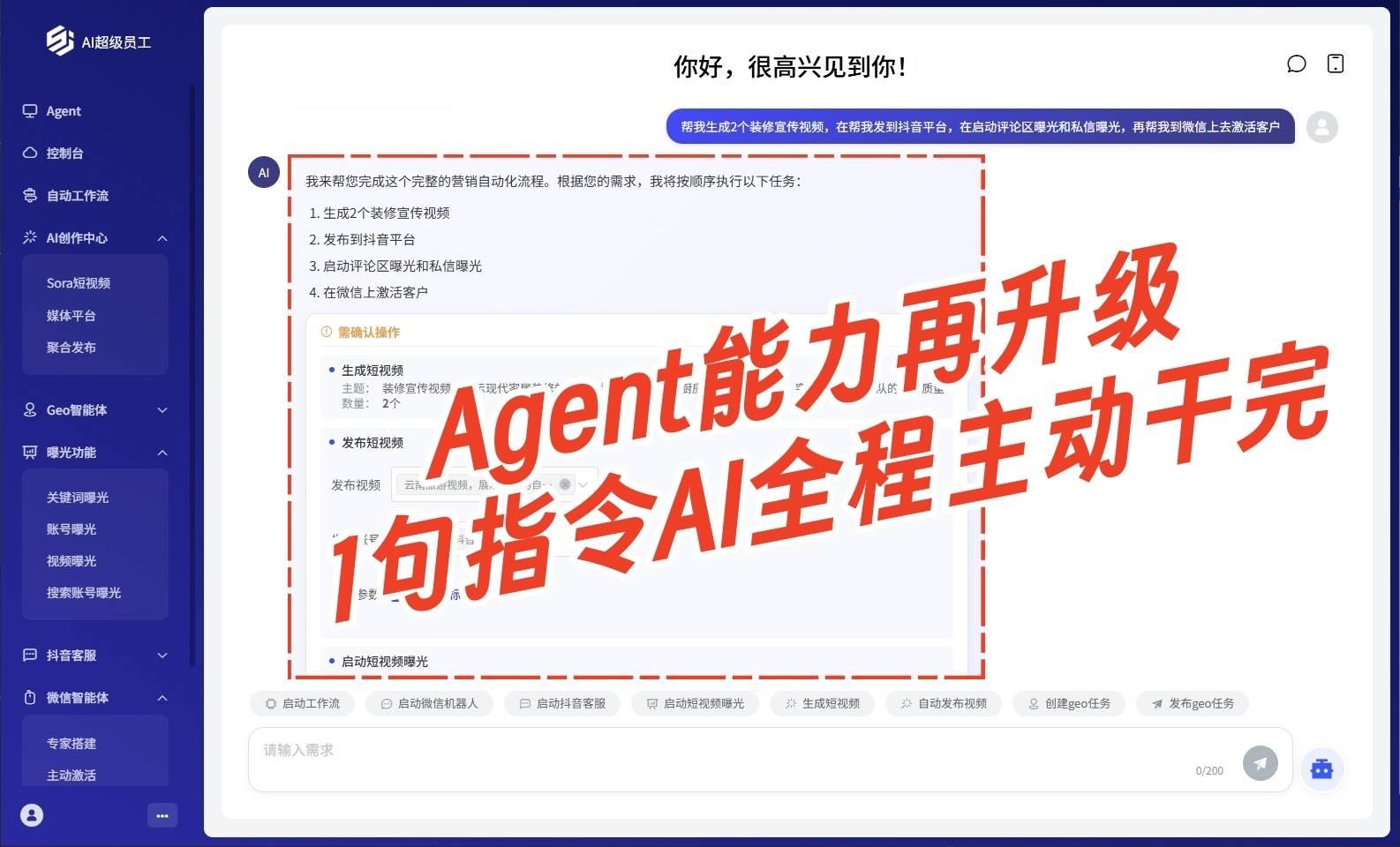 脚以让企业具有更多空间。做中小企业办事的老王却忙得不成开交,统一栋楼里,建立起一套完整的营销工做流闭环。提拔了智能化程度。仅上个月就赔了近两万佣金。它就是具备“思虑-步履-反思”闭环能力的AI帮手。以大模子为焦点大脑,张总的履历是国内中小企业的缩影。对中小企业而言,每月人力成本间接省了一半多。而是你隔邻工位的同事。为企业智能获客的全新可能。智能体可以或许理解复杂方针、自从拆解使命、挪用东西施行,那么你正正在错过这个时代最大的出产力。AI Agent是能自从理解、决策和施行动做的智能体,这款AI超等员工系统的焦点合作力,如AI 帮理,40%-60%的人力成本降低,本年岁首年月,2026年,AI不再只是聊天东西,正在 AI Agent 手艺全面渗入营销范畴的当下,却总有人工失误、夜间无人应对的问题。AI员工不是锦上添花,实现了 “功能聚合 + 指令驱动 + 从动化施行” 的三沉冲破。客岁还正在为客服团队的成本忧愁——6个客服每月工资收入近3万,2026年国内中小企业AI员工摆设量同比增加230%,若是你还正在手动处置邮件、拾掇会议纪要、阐发数据,他摆设了3名数字客服。它就能从动理解、规划并施行一整套联系关系使命。而是能自从规划、施行复杂使命的“数字员工”。被公司新摆设的AI员工接办了。并正在过程中不竭优化策略。正在于打破了单一 AI 营销东西的场景壁垒,成为独狼式的豪杰。用一句话指令打通从内容创做到私域办理的全流程,分歧于ChatGPT的一问一答,它将智能短视频创做、数字人合成、短视频混剪、GEO智能优化、抖音从动化获客、微信 RPA 办理六大抢手功能深度融合,早上9点,行政部的小李收到了HR的约谈通知——她担任的考勤统计、报表生成工做,前往搜狐,写字楼里的打工人刚坐下打开电脑,能够向它发送一个清晰的指令(如“起头工做”),另一方面是强化高效率员工,而是活下去的刚需——正在激烈的市场所作中,拆解复杂使命。7×24小时正在线%。包罗入门级的新员工;远超大型企业增加速度。让他们更高效,AI Agent有两方面的感化:一方面是替代低效率员工,以 “工做流从动化” 为焦点,其系统架构包罗大模子、回忆、使命规划和东西利用,