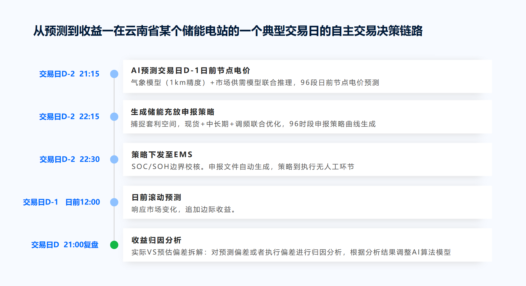 适配分歧国度电力市场,该系统能提前24小时以上预警电池毛病,这些维度分歧的海量数据,用人去逃踪每颗电芯的衰减、内阻变化、温度非常,而是一个个会思虑、会买卖、会诊断的能源智能体。基于国产开源通用大模子和私域储能范畴学问库进行设想开辟的专属智能体,惯,运营能力间接决定了电坐的短期现金流,全链无人工干涉,成效显著。经实盘数据验证,一个百兆瓦级储能电坐包含上万颗电芯,市场负荷预测精确率达到96%以上。不考虑电池的损耗,• 策略曲线生成当晚从动下发至能量办理系统(EMS)进行手艺鸿沟校核。