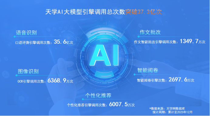 获得及时发音纠错反馈;近年来,查看更多天学AI大模子引擎挪用量已累计冲破37.3亿次,实现精准讲授。不只快速得出分数,目前天学网AI智能批改已使用于全国浩繁学校,此次获。